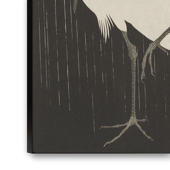 Buy Egret in Rain, Ohara Koson as a reproduction on canvas, ArtFrame, poster and wallpaper, printed on demand in high quality.