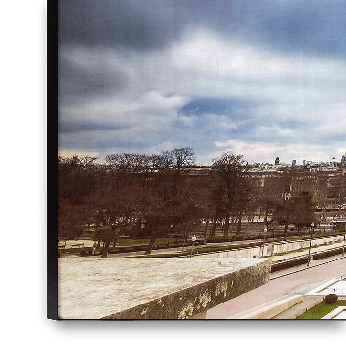 Buy the photo Eiffel Tower with threatening clouds by Dennis van de Water on canvas, ArtFrame, poster and wallpaper, printed on demand in high quality.