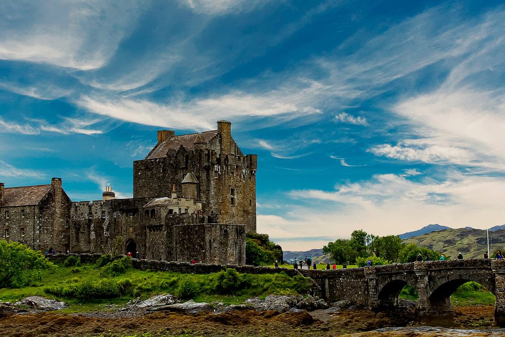 In Scotland at the Loch Duich in the town of Dornie the beautiful Eilean Donan Castle can be found. The castle is open for visitors and one of the most beautiful castles in Scotland.