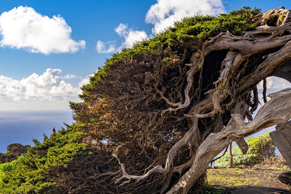 wind shaped Sabina Juniper tree at El Sabinar, El Hierro, Canary Islands, Spain | twisted Sabina Juniper tree at El Sabinar, El Hierro, Canary Islands, Spain
