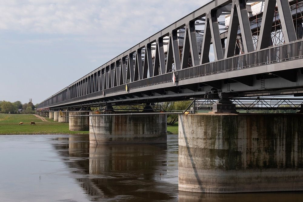 Wittenberge Brandenburg Germany Elbebrücke Wittenberge Steel Railway Bridge, once the longest bridge of the Deutsche Reichsbahn, the railway company of the DDR.