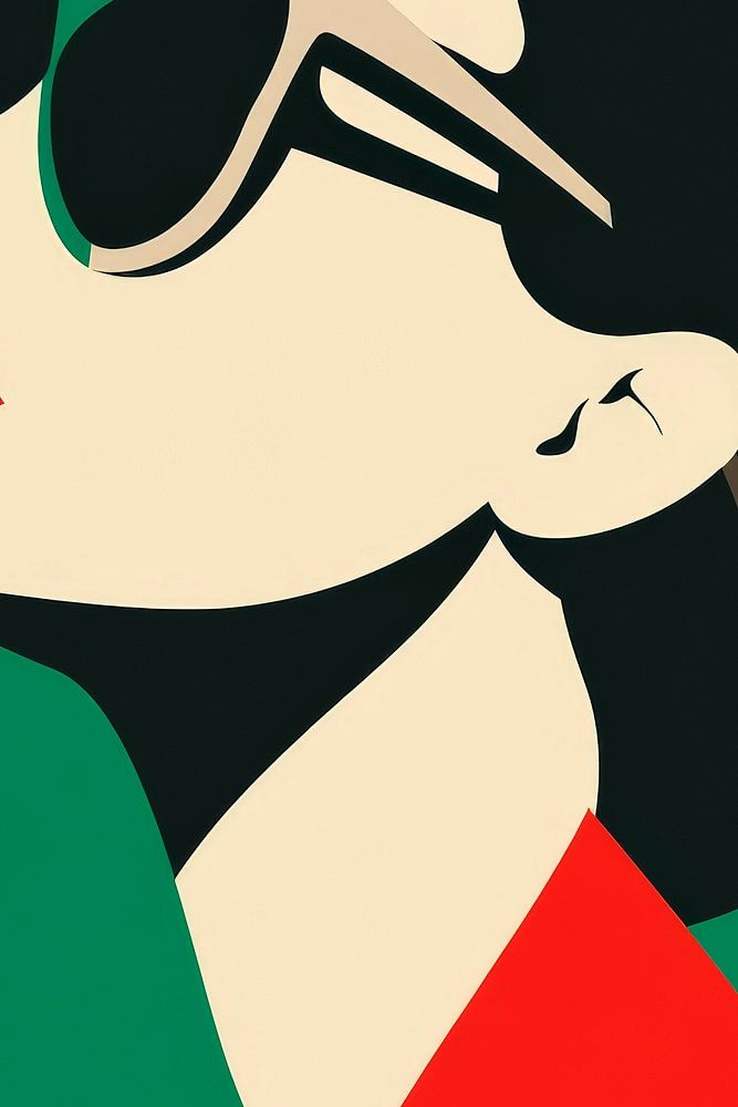Elegance and style radiate from this illustration, which shows a confident, glamorous figure in sunglasses. Her bright red lipstick and minimalist green background design add a fresh, modern touch to the room. Ideal for the living room or lounge, this artwork makes for an exciting eye-catcher that will spark conversation.