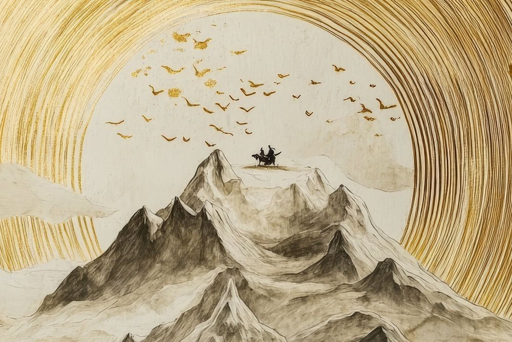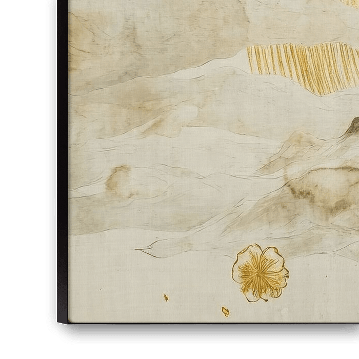 Combining Eastern aesthetics and modern lines, this unique artwork depicts a lone horseman standing high above the clouds, on a path to a distant horizon. The golden lines add a sophisticated look, and the soft tones evoke the feel of an ink drawing on rice paper. A true piece of art for lovers of understated but meaningful decoration, perfect for creating a calm and refined atmosphere in any interior.