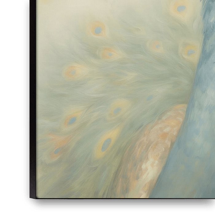 A colourful digital painting of an elegant peacock. The work gives a dreamy and classic look to your interior!