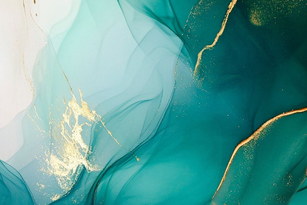 Sweeping waves in soft aqua and turquoise tones catch the light and lend the room a harmonious elegance. Golden accents run through the painting like rays of sunshine, conveying a sense of calm and luxury. Perfect for the living room, it creates an inviting atmosphere that invites you to linger.