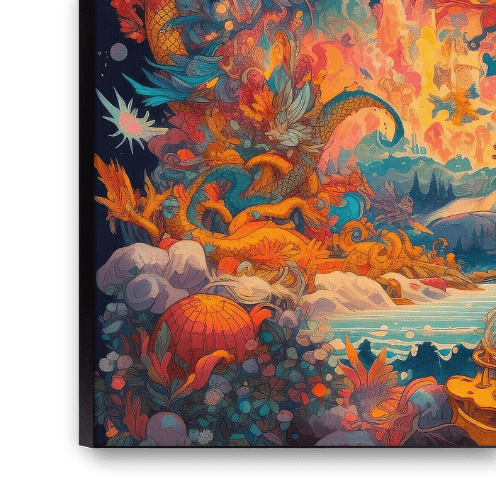 In a world where balance and unity often seem unattainable, there exists a hidden realm of pure wonder, where fire and water harmoniously coexist. This breathtaking, detailed painting captures the essence of that mystical place, inviting you to immerse yourself in the vibrant, psychedelic art that weaves a tale of the Elemental Union.
