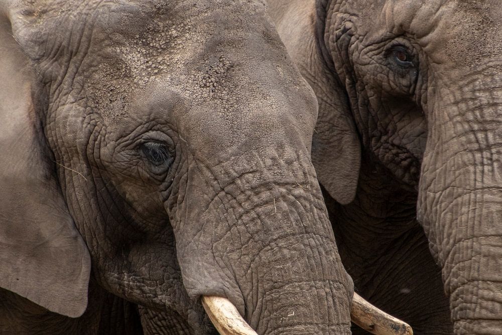 Two large African elephants at Safaripark Beekse Bergen. Photo shot in Hilvarenbeek on 17 October 2024 on a summery autumn day.