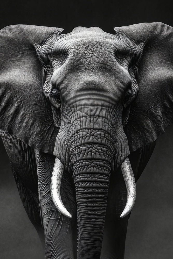 Majestic and powerful, the elephant breaks through the darkness, its imposing ears and impressive tusks catching the eye. The monochrome depiction creates a timeless elegance that fits perfectly in a living room and adds a touch of wildness and strength to any room. An eye-catcher that invites you to marvel.