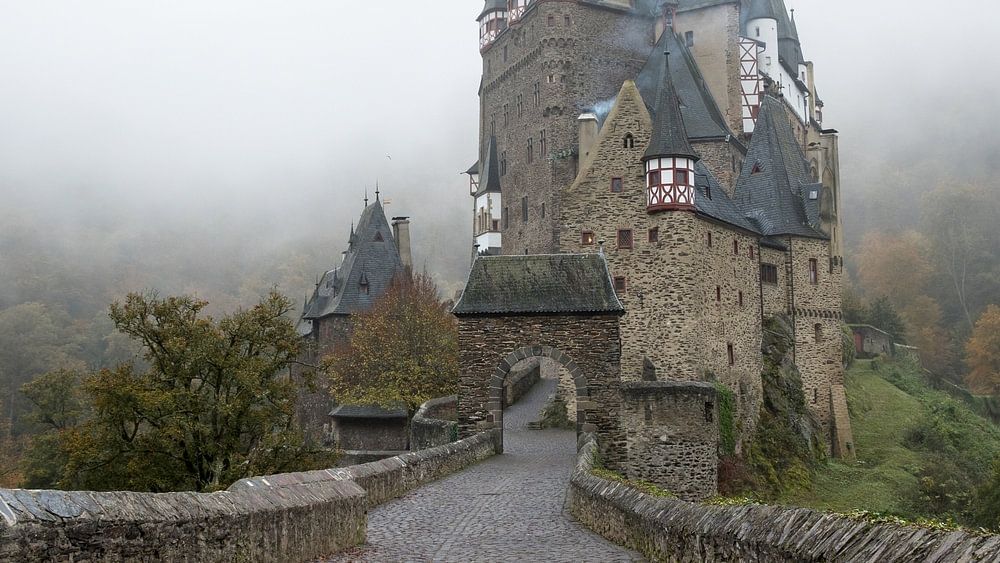 The beautiful Eltz castle is located in the beautiful German town of Wierschem, close to the Moselle in the Eifel region. The photo was taken early on an autumn morning. The mist makes it a bit fairytale-like.