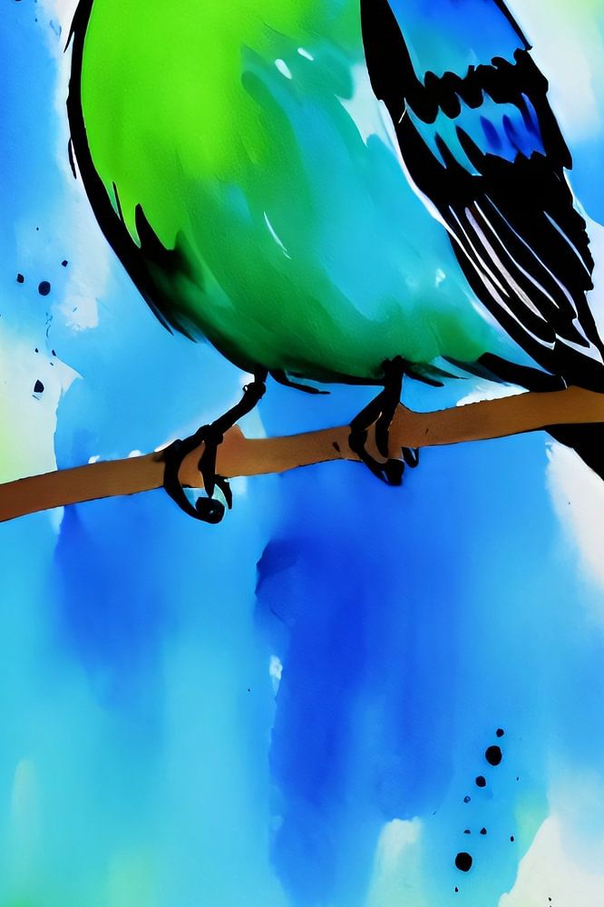 Emerald Bird v Watercolour Sky by Art & Soul Creations