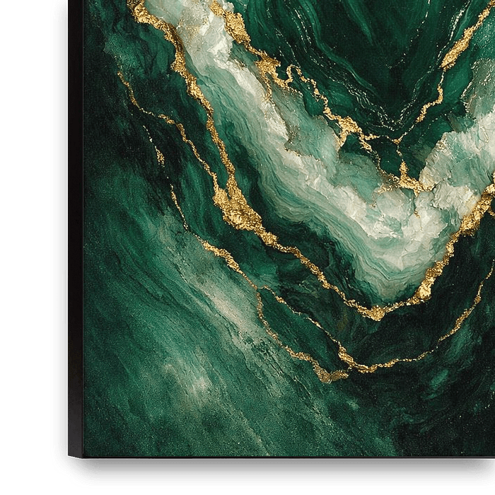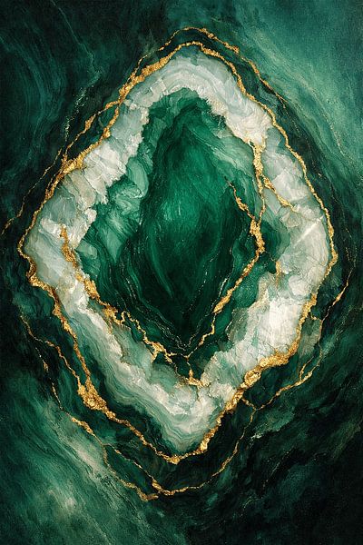 A refined abstract composition inspired by the organic beauty of green agate and liquid marble textures. Deep emerald tones flow seamlessly into lighter jade layers, enriched with delicate white mineral formations and subtle golden veins that evoke natural stone formations. This artwork embraces a pure visual aesthetic approach,…