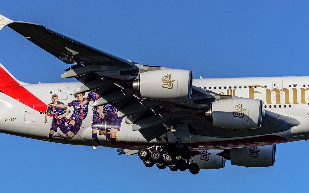 Emirates Airbus A380 in Paris Saint Germain livery.