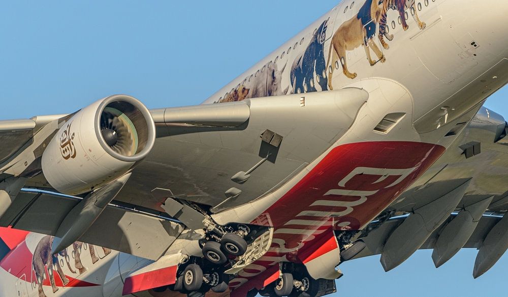 Emirates Airbus A380 with United for Wildlife livery.