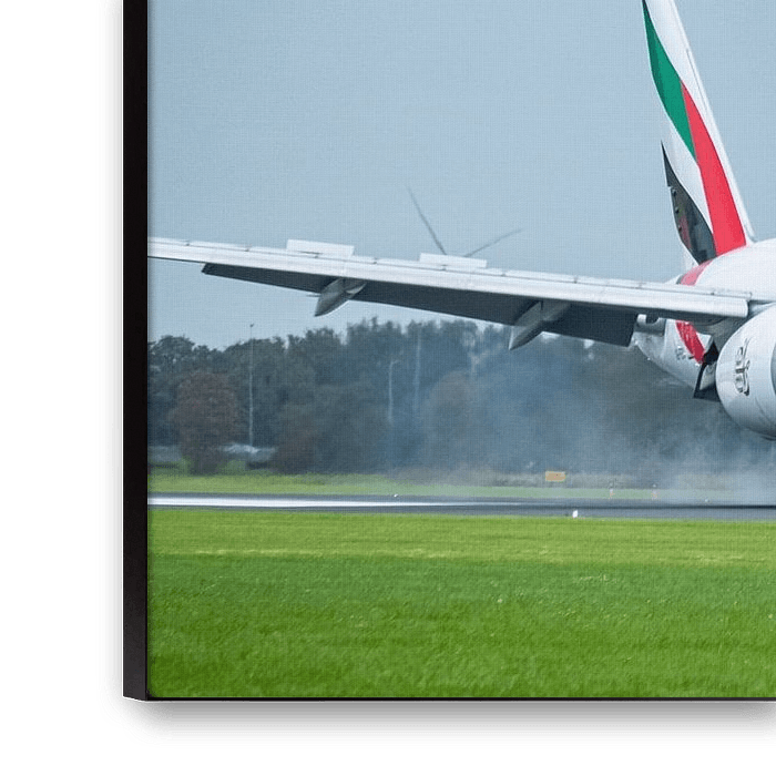 Buy the photo Emirates Airline Boeing 777 landing at Schiphol airport by Sjoerd van der Wal Photography on canvas, ArtFrame, poster and wallpaper, printed on demand in high quality.