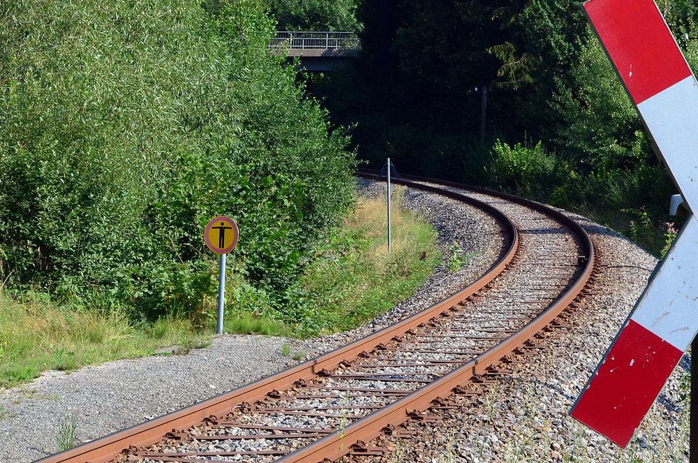 Empty railway with St. Andrew's Cross somewhere in the outskirts of Bavaria with lots of greenery
