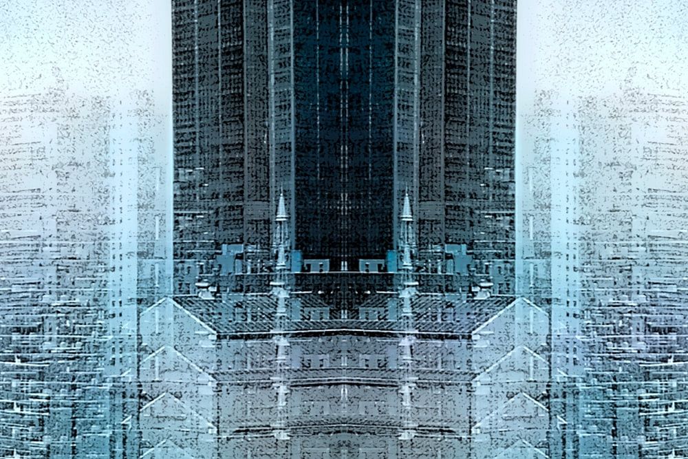 Buy this landscape artwork Enchanted city in blue by Mad Dog Art on canvas, ArtFrame, poster and wallpaper, printed on demand in high quality.