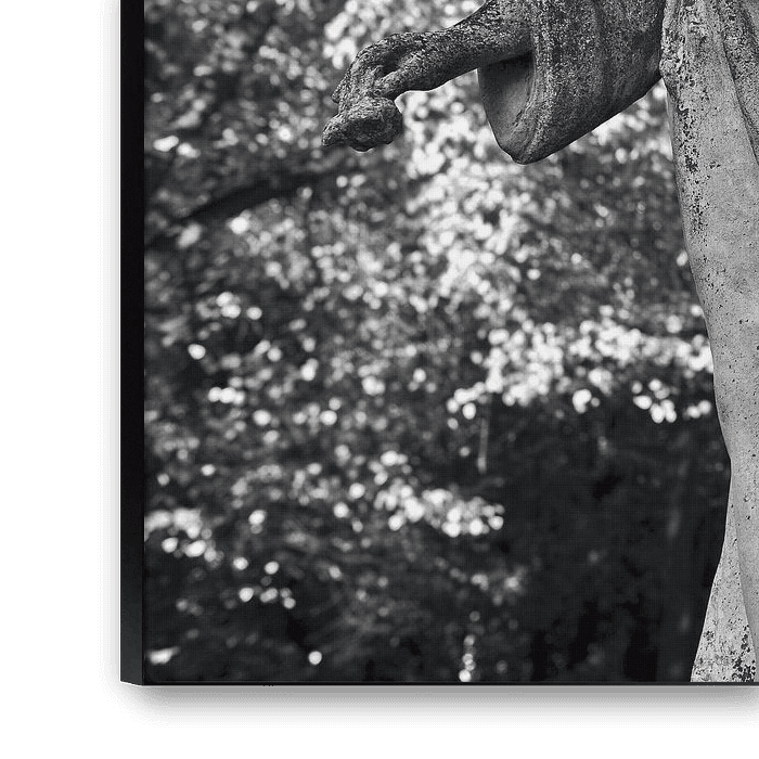 The conversion of the colour values into classic black and white lends the angel motif a timeless, elegant and particularly charming atmosphere.