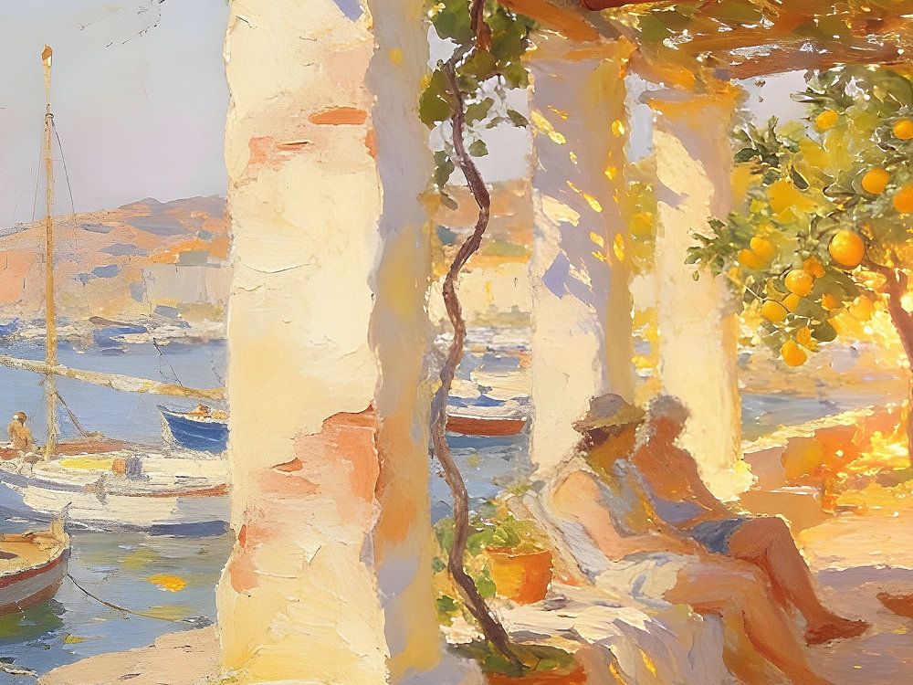 Buy this painting Endless Afternoon - Mediterranean Mood by Mellow Art as a reproduction on canvas, ArtFrame, poster and wallpaper, printed on demand in high quality.