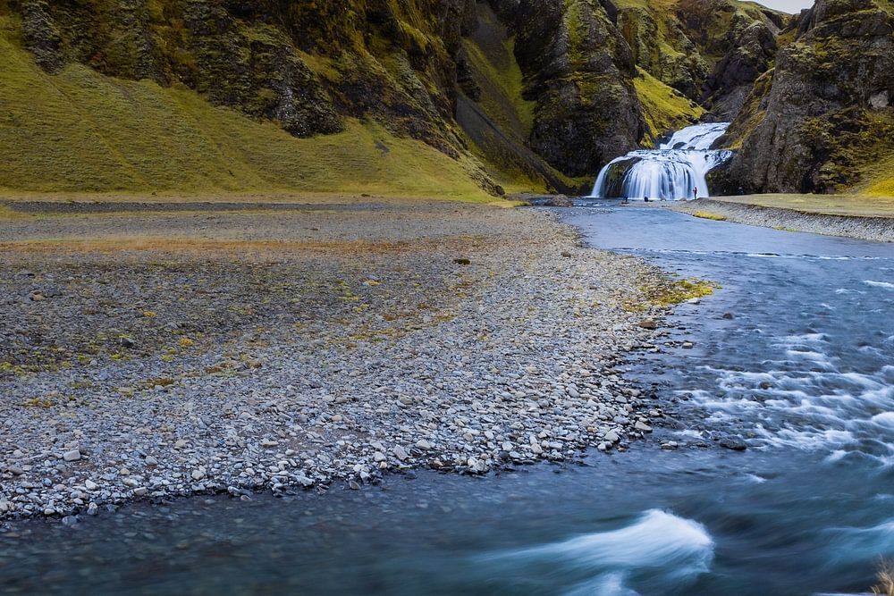 A majestic waterfall in Iceland, where the power of nature comes alive in unprecedented ways. The water flows timelessly through the landscape to the Atlantic Ocean where it mixes with the world's waters. The surrounding rocks and lush greenery seem to embrace this symphony of nature.... A breathtaking spectacle that caresses the soul and reflects the amazing splendour of our planet.