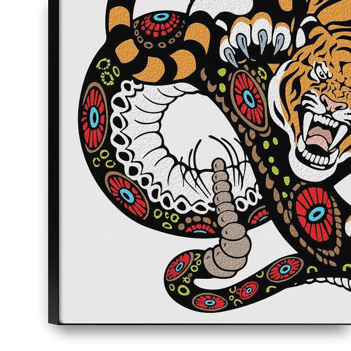 Buy this Popart artwork Epic Battle: Tiger vs. Snake Art by Ramy Salah Hefny on canvas, ArtFrame, poster and wallpaper, printed on demand in high quality.