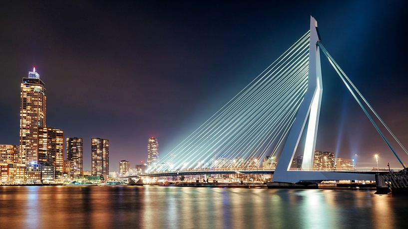 Erasmus Bridge Rotterdam at night by Rene van Heerdt