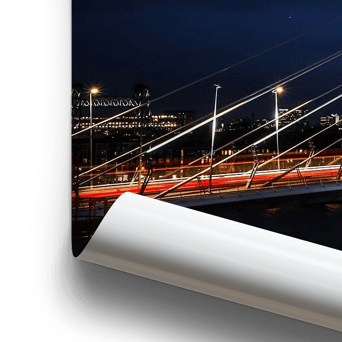 On a cold winter evening, the Erasmus Bridge shines in all its glory. The icy sky silences the city, while the bridge sparkles in the soft light. Its elegant lines reflect in the dark waters of the river Maas, and Rotterdam's skyline seems momentarily enchanted. A moment of calm, beauty and pure Rotterdam pride.