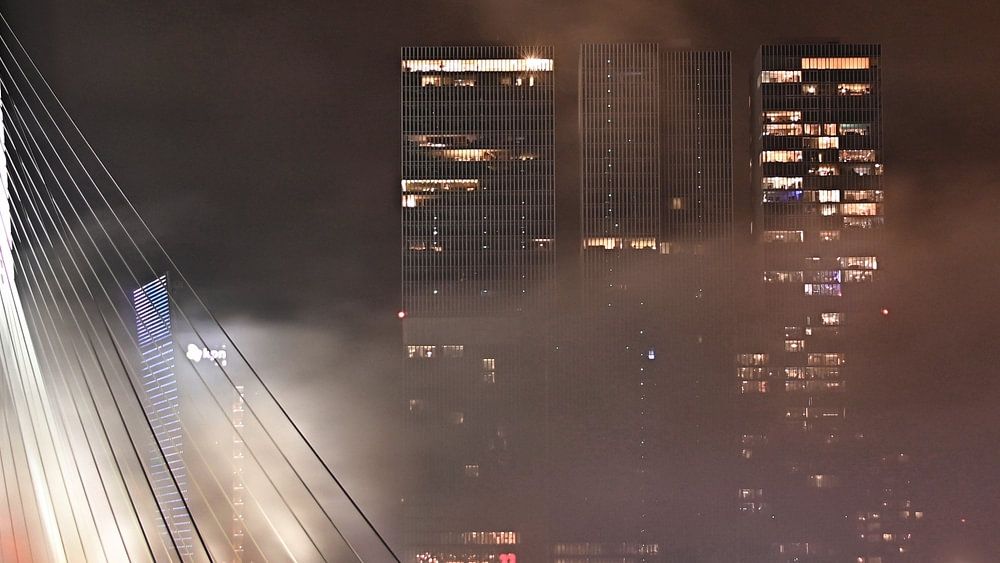 Erasmus Bridge in the fogMark Bos WesterkadehuisMark Bos