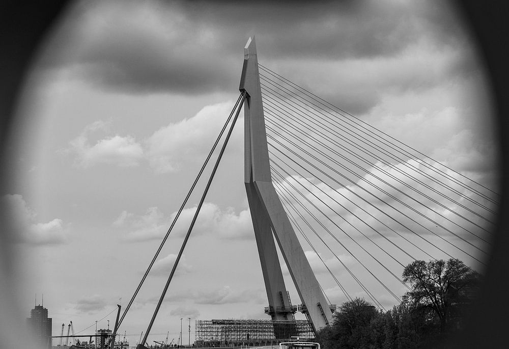 Buy this Skyline of Rotterdam Erasmus Bridge by Lisette Goudkade on canvas, ArtFrame, poster and wallpaper, printed on demand in high quality.