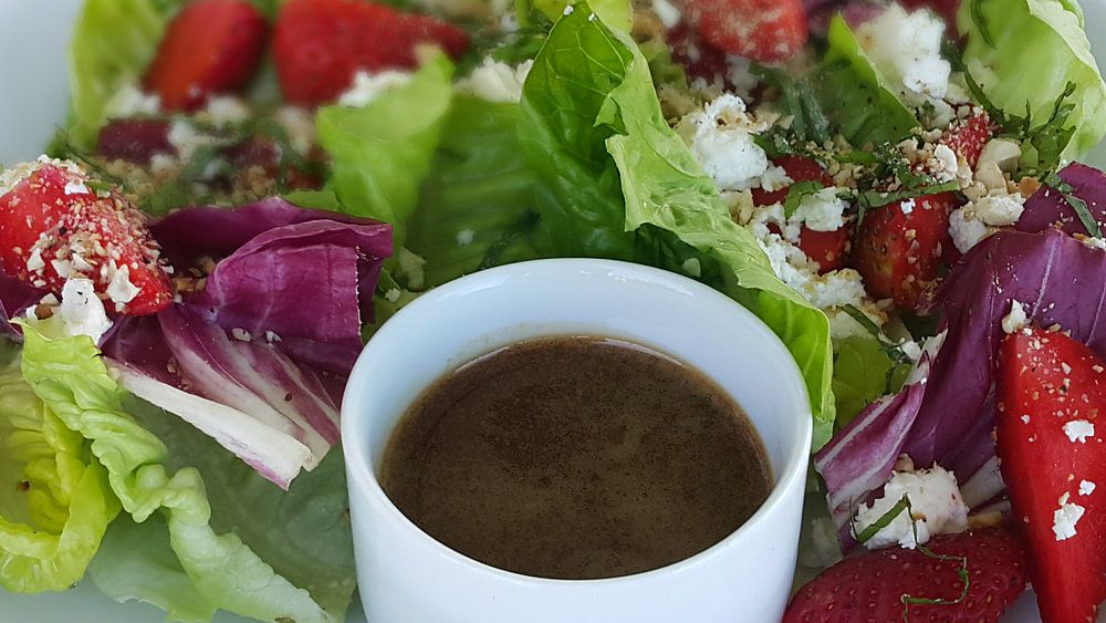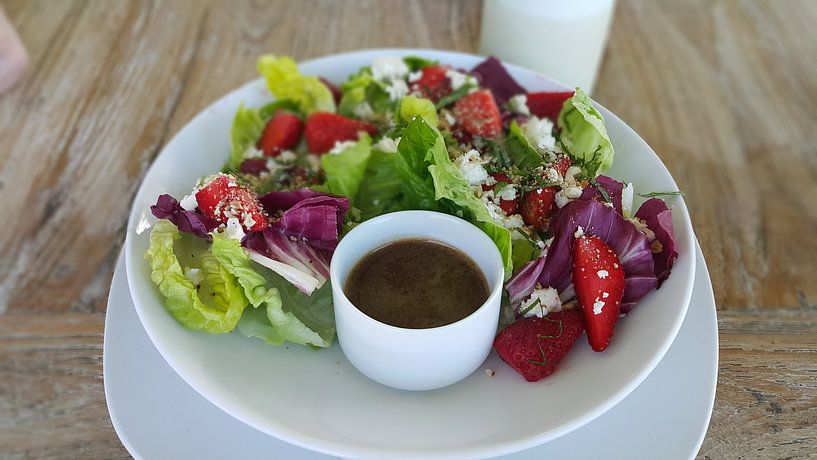 Ein herzerfrischender Salat in einem Restaurant mitten im Reisfeld.