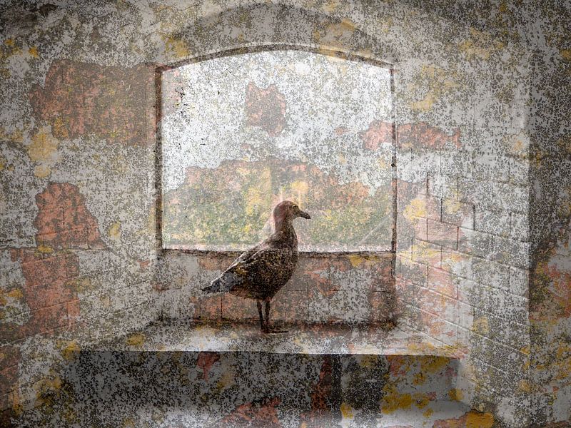 San Francisco, Alcatraz. This seagull looks longingly out the window at freedom. He can fly away through the window. How different it was for the inmates, who were incarcerated in this prison until 1963