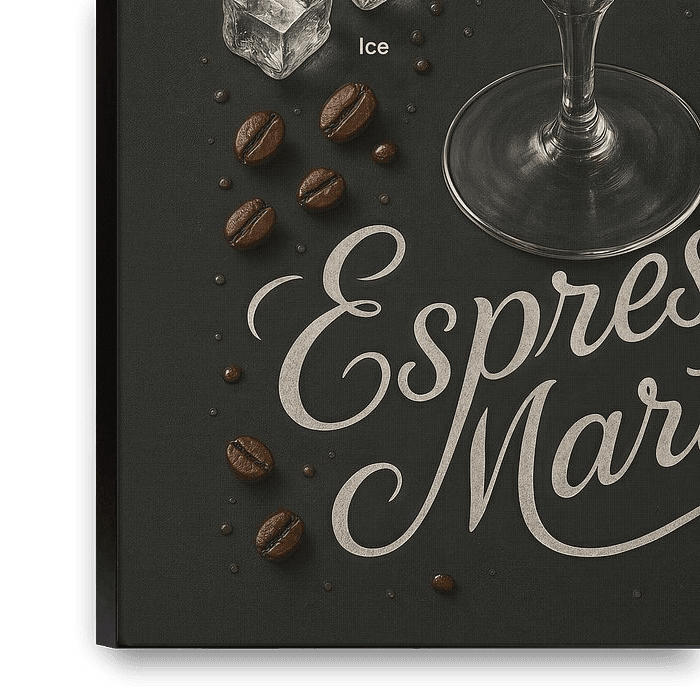 This stylish espresso martini blends vodka, rich coffee, and morning energy in one perfect drink. A sleek kitchen or bar poster for cocktail lovers – with coffee beans, alcohol, and bold typography – ideal for fans of coffee-based drinks and elegant recipes.
