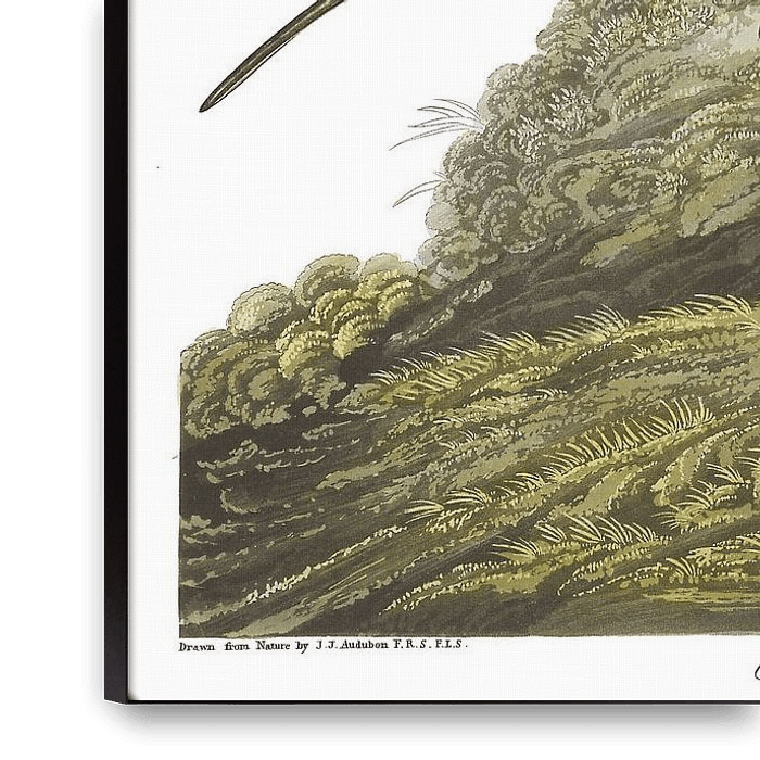 John James Audubon was born on April 26, 1785, in Les Cayes, Santo Domingo, France (now Haiti). From his father´s Pennsylvania estate, Audubon made the first American bird-banding experiments. He began collecting all things ornithological and making pencil and pastel sketches of birds. As his confidence as an artist grew, he ventured into watercolors, the medium he would most often employ. Audubon became a traveling artist, teaching occasional pupils, but always painting local birds and their natural habitats. His major work, a color-plate book entitled The Birds of America (1827–1839), is considered one of the finest ornithological works ever completed. Audubon died on January 27, 1851 in New York City. Note: This artwork can also be obtained without accompanying text in the illustration. Please contact us.