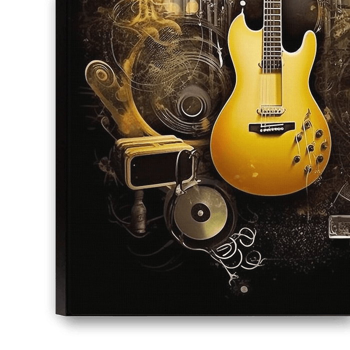 Especially for the music lovers among the visitors, I devised a series and had it executed on the Midjourney Ai-art software on the command "The Essence of Music " In addition, by putting each instrument in the right text spot, the outcome of all the calculations is somewhat manageable. Every band has this basic configuration on stage. Sometimes with the addition of other instruments.