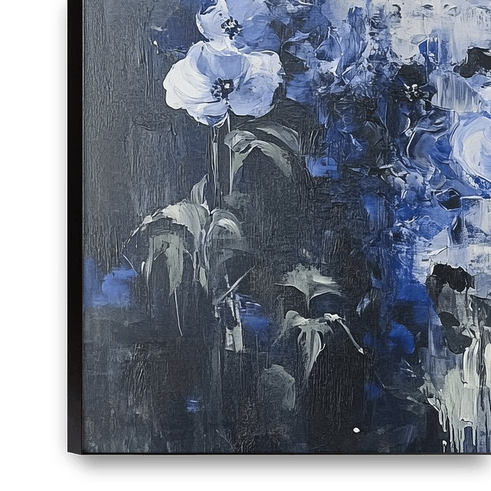 Details: flowers, blue, white, grey, nature, art, texture, modern, vibrant, elegant