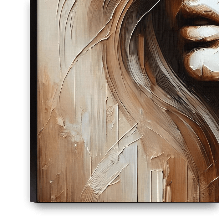 Discover the timeless beauty of an oil painting that captures a woman with long, wavy hair in warm browns and beiges. The subtle play of light and shadow accentuates her delicate expression and brings to life a serene, almost dreamlike atmosphere. The soft colours harmonise perfectly and give the work an understated elegance. A unique…