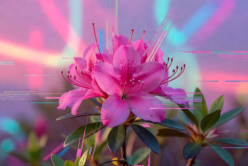 Buy this flower art Ethereal Pink Azalea Bloom with Abstract Light Glitch by Yuda ardian on canvas, ArtFrame, poster and wallpaper, printed on demand in high quality.