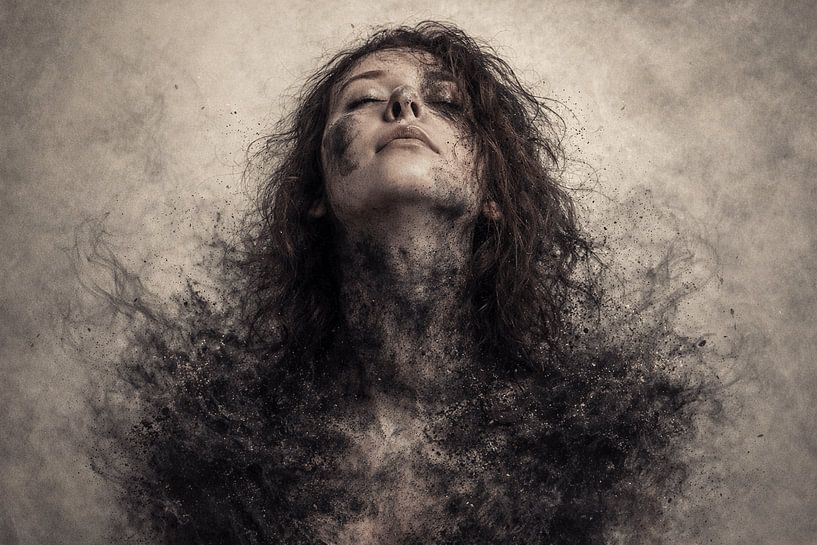 Buy this digital art artwork Ethereal smoke and ash portrait by Frank Lavooij as a reproduction on canvas, ArtFrame, poster and wallpaper, printed on demand in high quality.