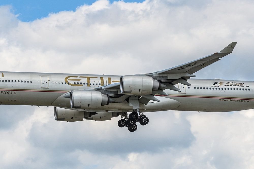 Etihad Airbus A340-600 just before landing.