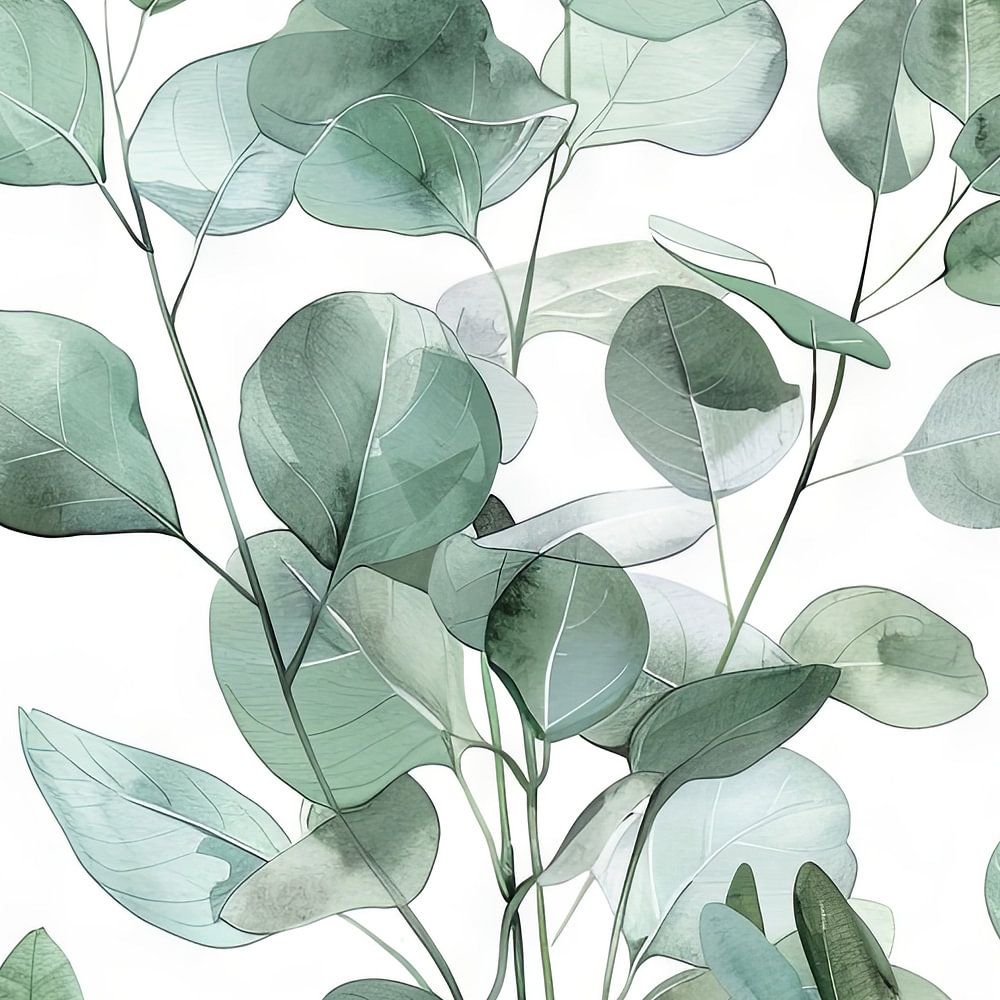 This art print shows a lush eucalyptus plant with delicate green leaves on a light-coloured background. The soft colour tones and natural texture give this artwork a calming and relaxing feel. The minimalist approach and fine details make this print an ideal decorative piece for modern living and working spaces. This design appeals to plant lovers who want to bring natural beauty into their home or office.