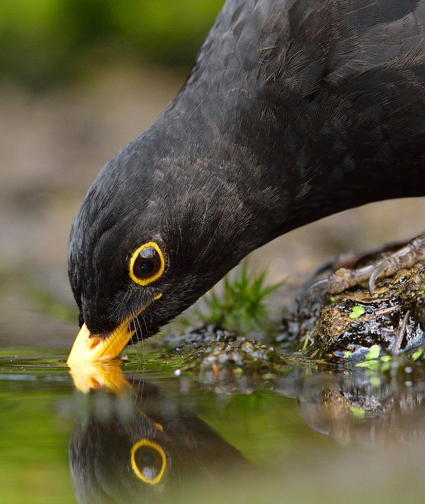 Deze merel neemt even een slokje....