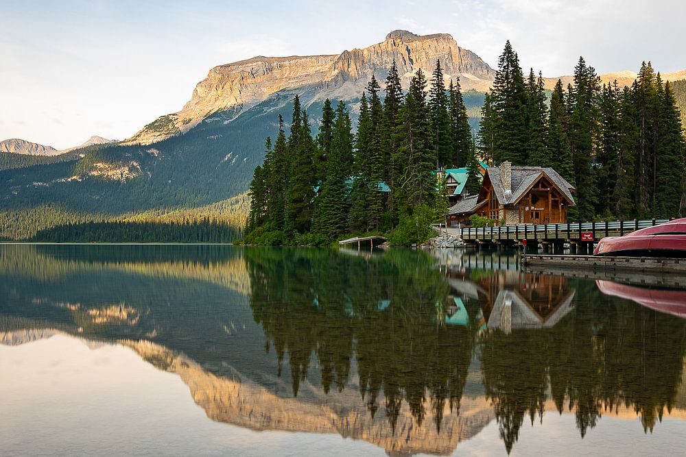 A unique image of Emerald Lake in Canada. Capturing the reflection creates a unique image of this normally bright blue lake.
