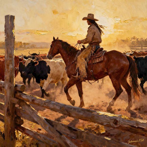 Buy this cow art Evening on the Open Range by Johannas Art Creations on canvas, ArtFrame, poster and wallpaper, printed on demand in high quality.