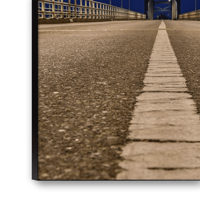 Old IJsselbrug or Katerveerbrug over the river IJssel between Zwolle and Hattem at night. View from the middle of the road on the old steel arch bridge.