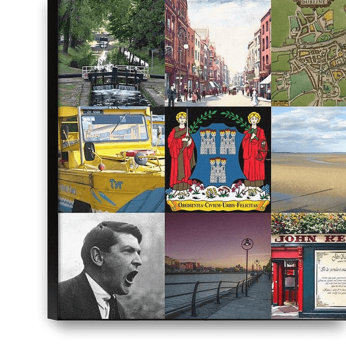 Buy this Popart artwork Everything from Dublin - collage of typical images of the city and history by Roger VDB on canvas, ArtFrame, poster and wallpaper, printed on demand in high quality.