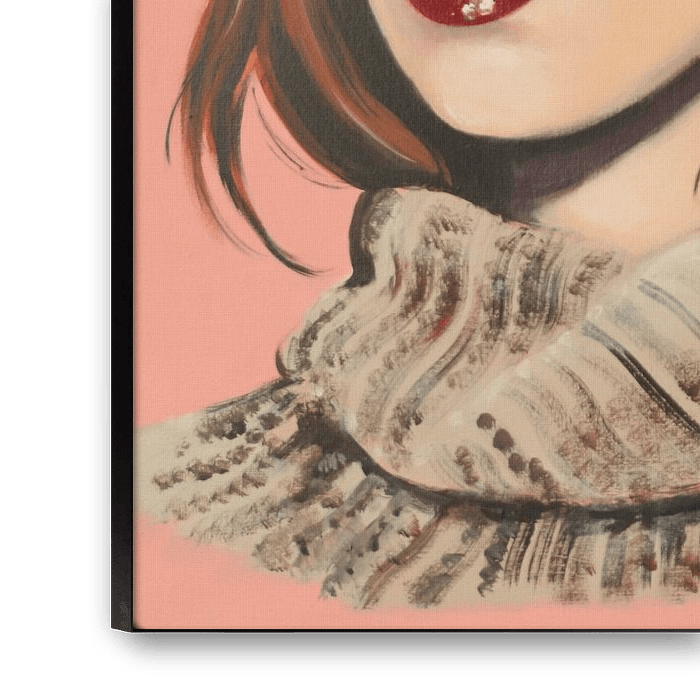 It is a portrait of a young woman looking into the distance.