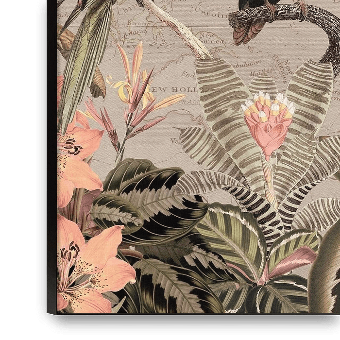 Buy this flower art Exotic bird life in the jungle by Floral Abstractions on canvas, ArtFrame, poster and wallpaper, printed on demand in high quality.