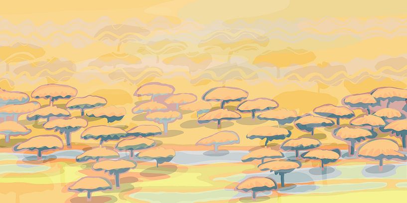 Buy this landscape artwork Extremadura hot shimmering plains by Cornelie de Haan on canvas, ArtFrame, poster and wallpaper, printed on demand in high quality.