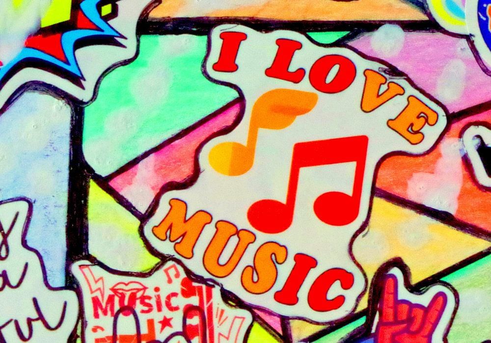 This collage is as colourful as the world of music itself, with a watercolour background.