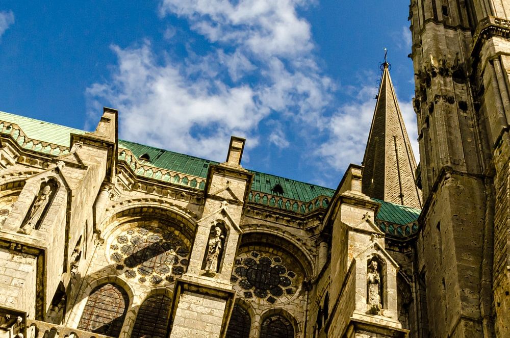 Facade and bell tower of Chartres Cathedral in France by Dieter Walther