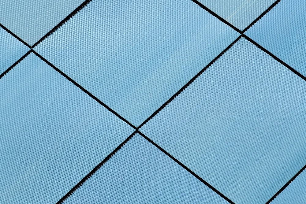 About "Facade made of a blue stainless steel"